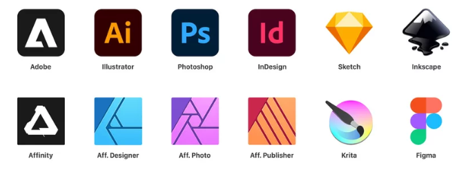 - Logiciels de PAO (Adobe, Affinity Designer…) ;